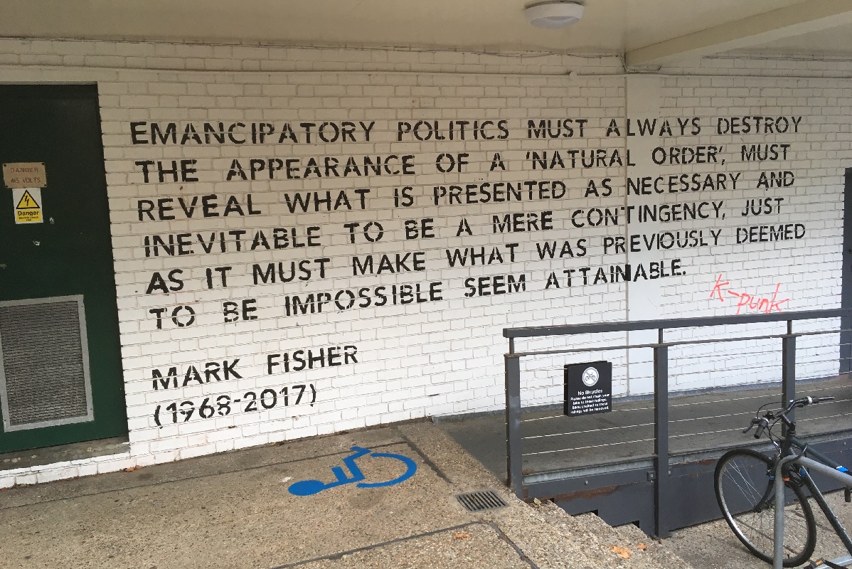 « Mark Fisher, c’est quelqu’un qui est né à la fin des années 1960. Ça veut dire qu’avant d’avoir 20 ans, il a vu toutes les défaites possibles de la classe ouvrière. Il a vu – comme enfant et puis comme adolescent – le début des années 80, il a vu la grève des mineurs, il a vu l’Angleterre et le pouvoir ouvrier se faire laminer. Il faut donc imaginer qu’au moment où il va se mettre à faire ses recherches intellectuelles, il a déjà assisté à ce moment de restructuration extrêmement violent du passage des années 1960-70 aux années 1980, avec le thatchérisme bien évidemment. Donc dès le départ, il y a quelque chose qui est de l’ordre du trauma politique. Et quand il parle de Joy Division et du désespoir qu’on peut ressentir à 13 ou 14 ans dans la Grande-Bretagne du début des années 1980, il rend compte d’une expérience quotidienne. Donc ça va revenir dans ses lectures et interprétations politiques. Et quand on essaie de comprendre comment il filtre la question du rapport entre le passé, le présent et la possibilité du futur, il faut donc garder à l’esprit que c’est quelqu’un qui a traversé cet arc de temps particulier, à cet endroit géographique et de classe. » (Julien Guazzini, traducteur de K-Punk aux éditions Audimat)